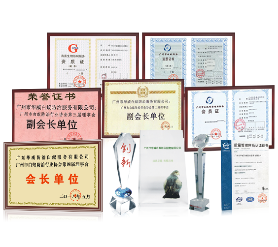 施工經(jīng)驗豐富,榮獲廣州市白蟻防治行業(yè)協(xié)會會長單位,通過ISO9001質量管理體系認證等多項資質榮譽